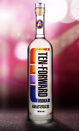 Der Ten-Forward Vodka, inspiriert von der Lounge an Bord der USS. Enterprise-D von Star Trek: The Next Generation wird aus ausgesuchtem amerikanischem Getreide hergestellt und sechs Mal sorgfältig destilliert. Grafikdesigner und Star Trek-Veteran Mike Okuda lieh dem Flaschendesign sein Talent.